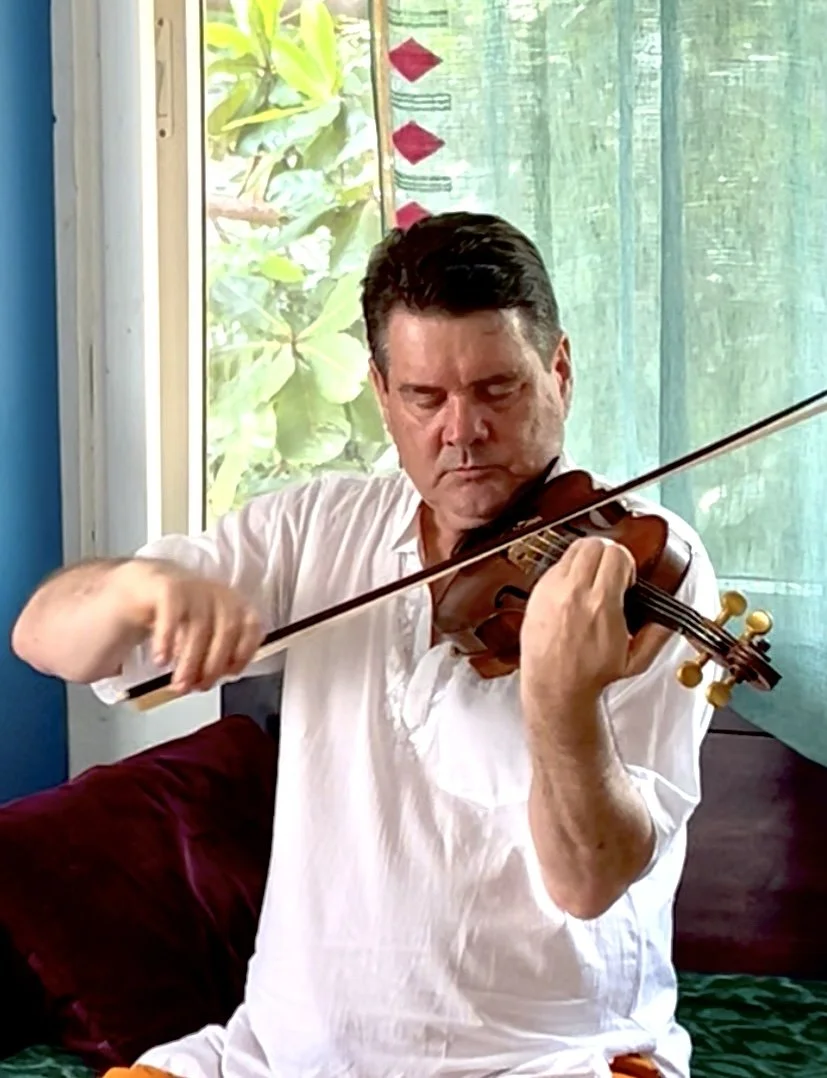 Christopher’s violin, made from a family Italian masters violin makers in the 18th century, was recently blessed by the spiritual master, Sri Sakthi Amma to heal people throughout the world with its music.